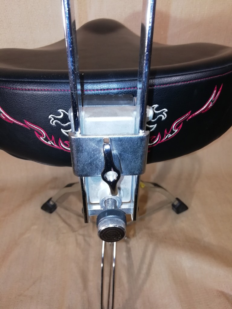 Csúcskategóriás dobszék műbőr ülőkével, rendkívül masszív alsó résszel, fokozatmentes magasság állítási lehetőséggel (485 mm-640 mm) HTB5B háttámlával és tartozékaival
